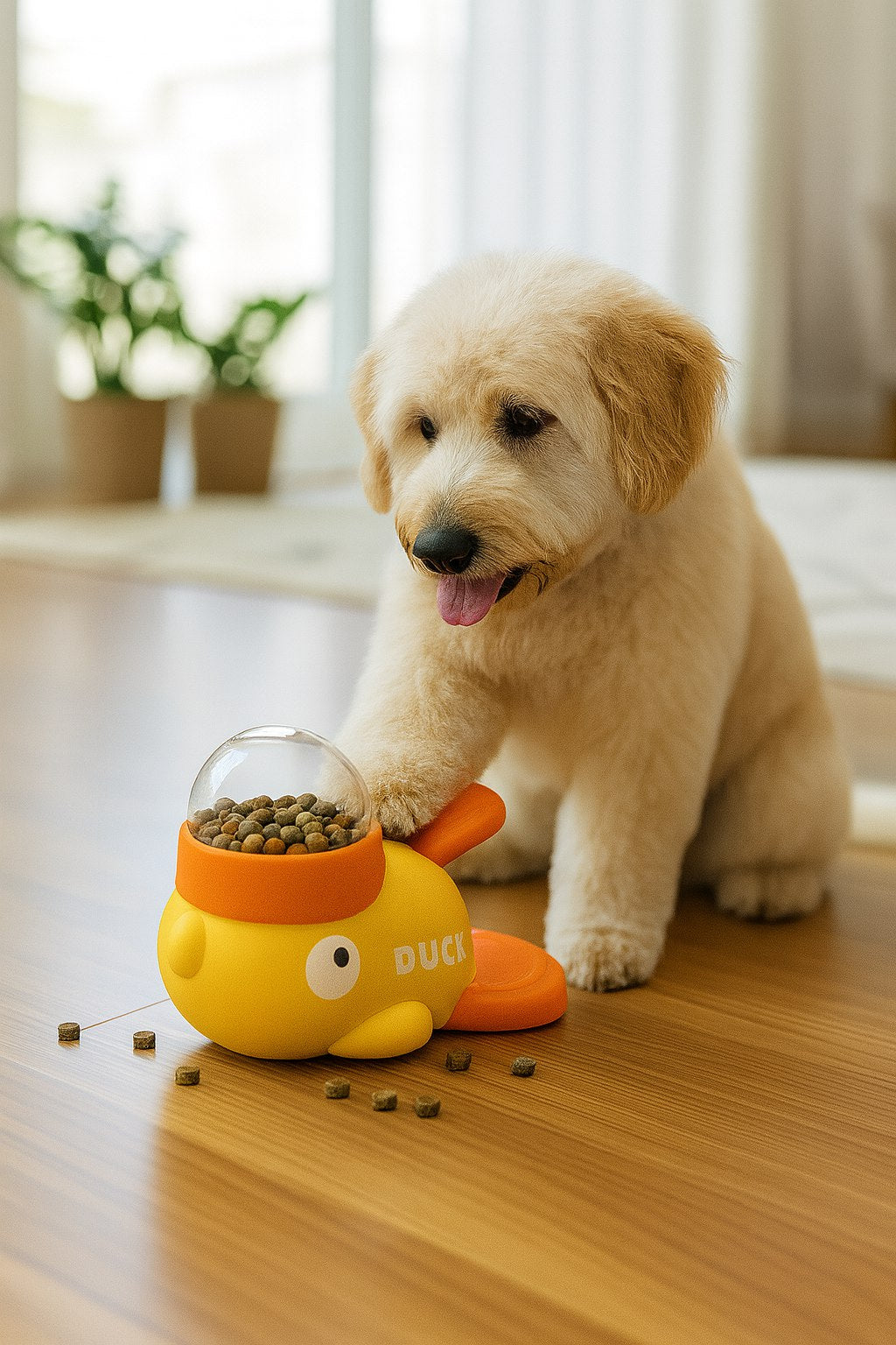 ¡Presentamos el comedero rompecabezas interactivo para perros y gatos con un adorable diseño de pato!